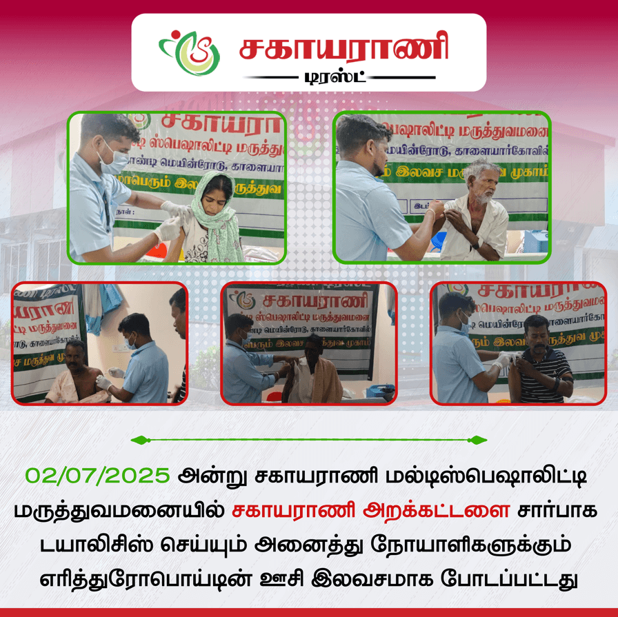 Sahayarani Trust began as a non-profit organization in 1960 by I. Santiago popularly known as Papaiya. It began by providing medical services to people living in villages within twenty kilometers of Kalaiyarkovil and educational services through a residential school in the early 1960s. His son, Antony Arulsekar took on the reins of the work and equipped the hospital with emergency health care and pharmaceutical services in the year 2002. The hospital started as a polyclinic and has now grown into a multi-speciality hospital.